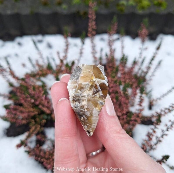 In de calciet zie je regenboogjes, die, vind ik, in het echt mooier zijn dan op de foto. Dit stuk reageert op UV-licht.