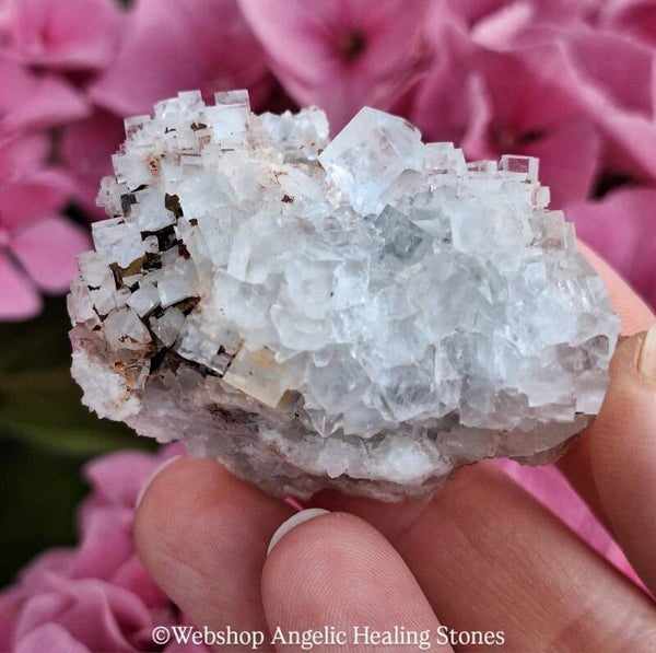 Deze prachtige cluster bestaat uit helderwitte fluorietkubusjes die mooi gevormd en zuiver zijn. Het geheel heeft een frisse, elegante uitstraling en laat perfect zien waarom witte fluoriet zo geliefd is onder verzamelaars. De kristallen liggen compact op de matrix en zijn in uitstekende staat.