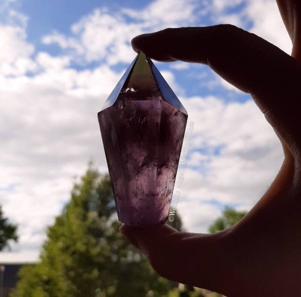 Fantastisch mooie ametrien punt met vele groei fantomen en een regenboogje.